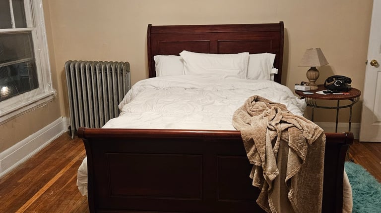 Full-sized sleigh bed. Linen supplied. Towels supplied.